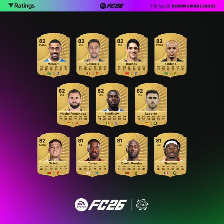 直播吧9月10日讯 EA SPORTS官方列FC26沙特联球员评分,C罗、本泽马、坎特、伊尼戈85分最高。