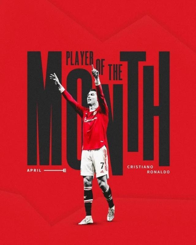官方:C罗当选曼联4月最佳球员,本赛季第4次当选月最佳